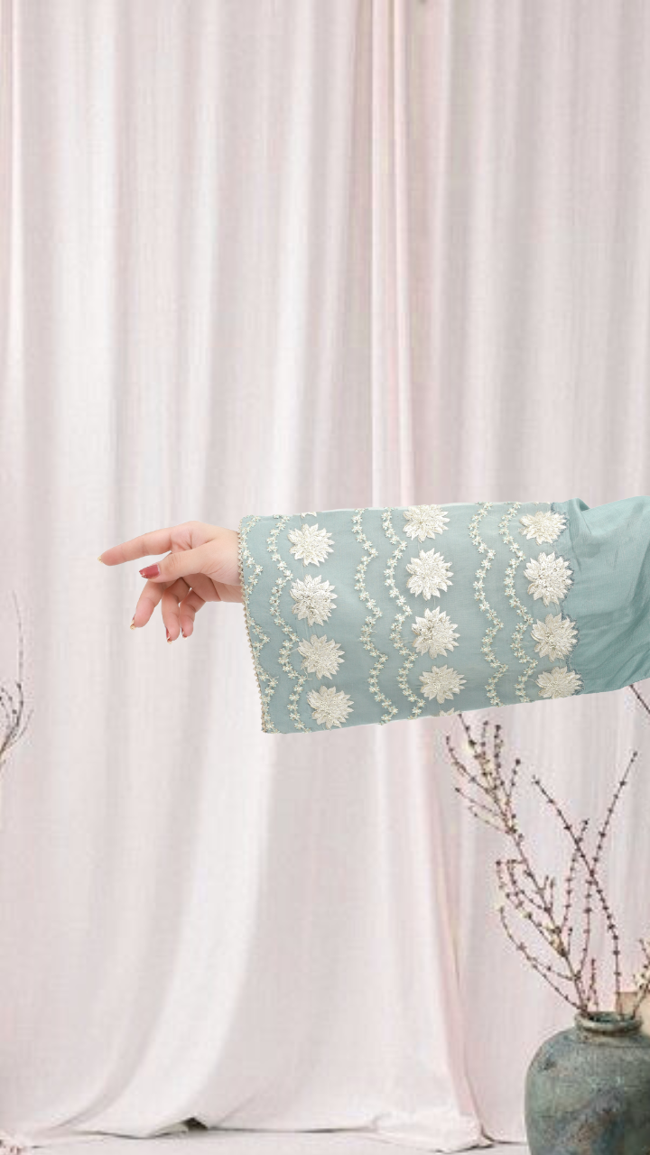 Mint Green Embroidered Raw Silk 3-Piece Suit | Daiselle by Zurwa's Collection – DAISELLE - Stitched / XS